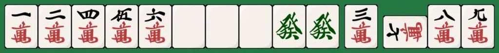 【一気通貫が不成立の例:順子の色混在([123]が萬子、[456][789]が索子)】