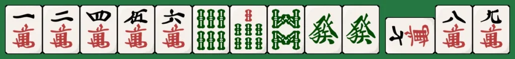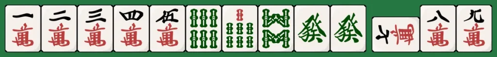 つまり、[123][456][789]の組み合わせが異なる色で揃っていても一気通貫とは認められません。似たような形で勘違いしやすいですが、ここが非常に重要なポイントです!同色で1から9までの完全な連続構成のみが一気通貫とみなされるため、順子の組み合わせを意識して構築することが大切です。
