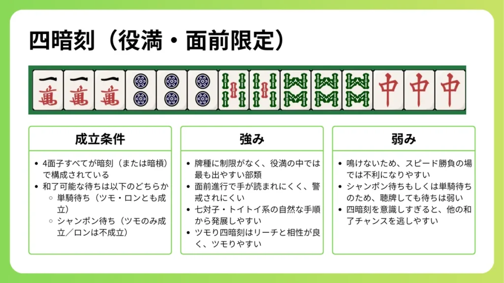 • 四暗刻のルールや成立条件を、あいまいさなくきちんと整理したい人