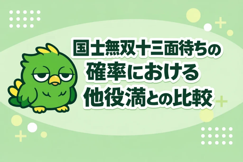 この記事では、国士無双十三面待ちの定義・条件から始めて、役満全体との確率比較、オンライン麻雀での点数扱い、さらに槍槓やフリテン十三面待ちなど、実戦で揉めやすいポイントまで一気に整理します。