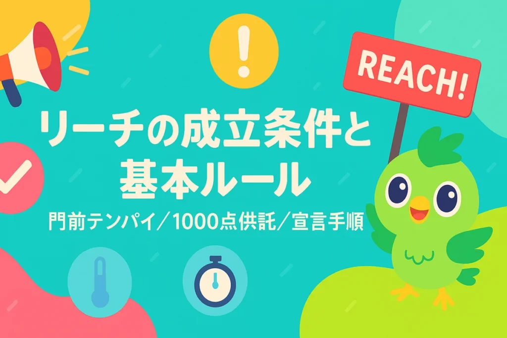 本記事では、まずリーチが成立するための基本条件とその具体的な手順を丁寧に解説します。続いて、リーチをかけた後に生じる制約やマナー、暗槓の可否といった実践的なルールも網羅します。