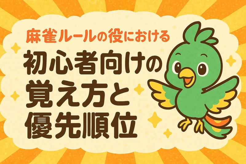 役を覚えるときは「全部覚える」のではなく、「鳴けない役だけ」「頻出役だけ」と切り分けるのがポイントだよ。まずはリーチ・タンヤオ・ピンフ・役牌・混一色を軸に、リーチ主体の打ち方を身につけると上達が早くなるよ。
