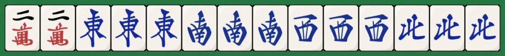 例:各風牌が2枚以上+他牌 など