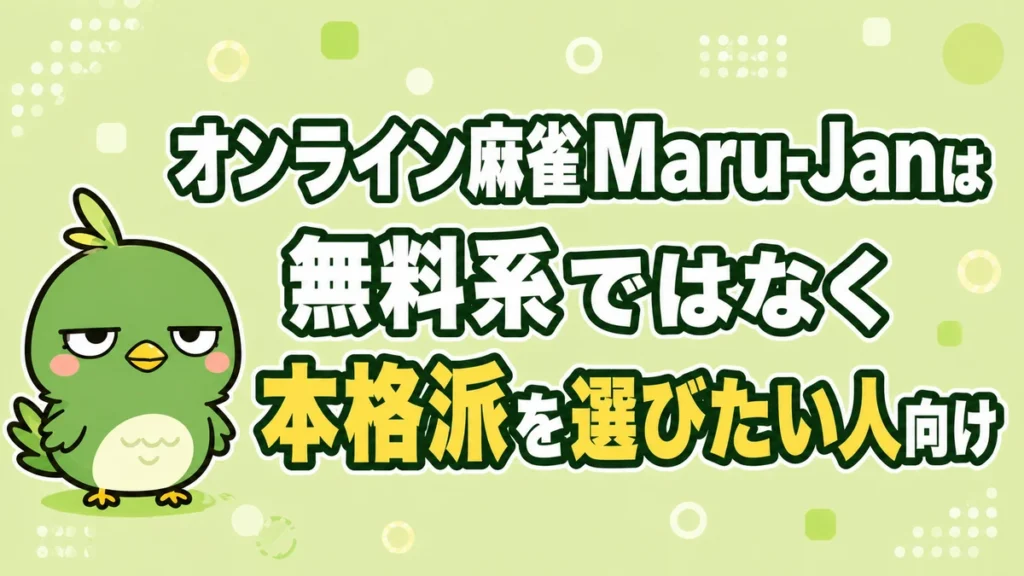 Maru-Janを一言でいうなら、無料で数を打つ麻雀ではなく、家で雀荘に近い空気を味わいたい人向けのサービスです。
